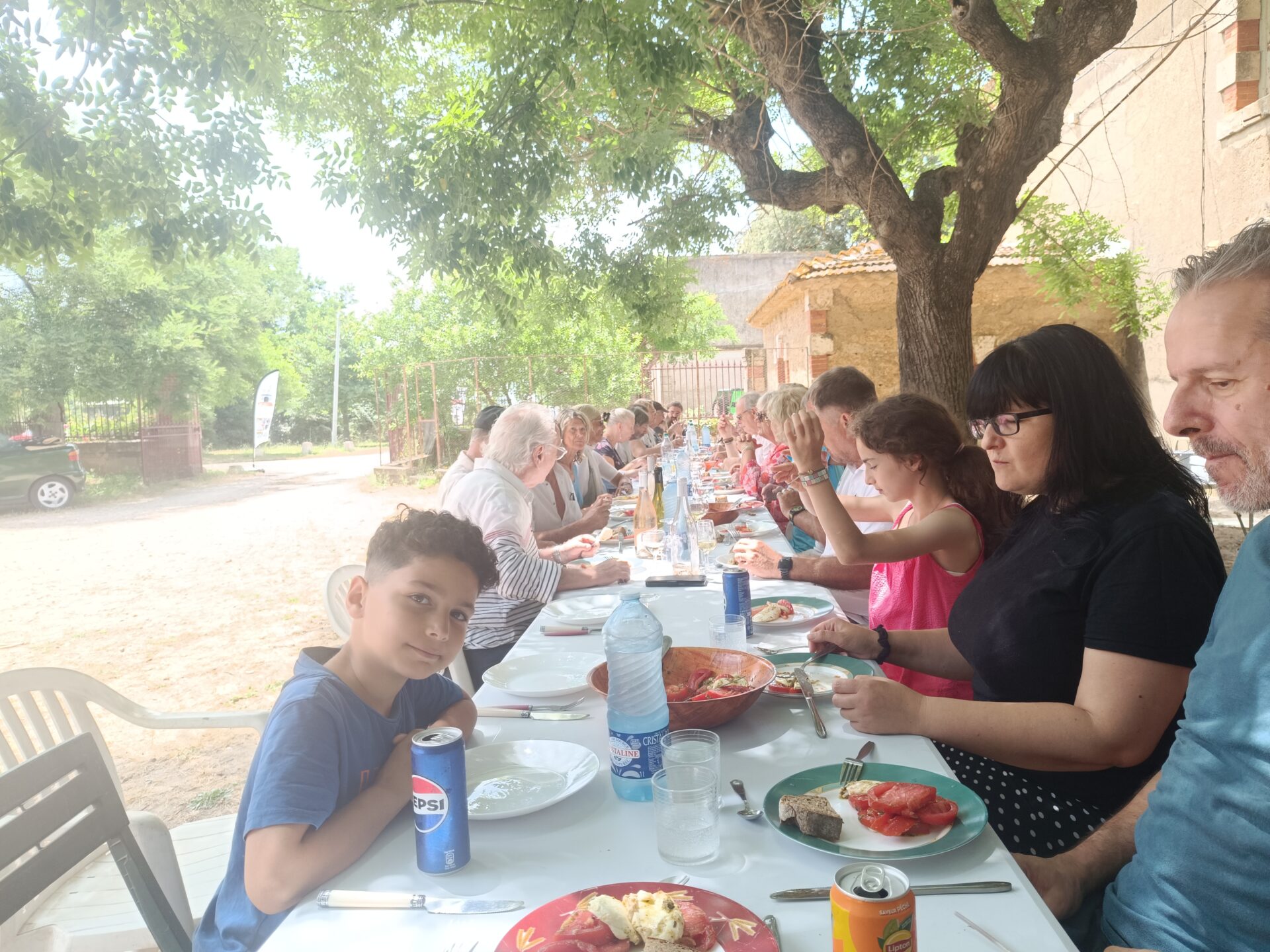 Puis vient le moment tant attendu de l’apéritif, sous l’ombre accueillante des acacias. Les échanges, toujours riches et animés, reflètent l’esprit unique de notre club. Tous ensemble, nous mettons la main à la pâte pour dresser les tables, avant de savourer un repas original, préparé avec soin.
